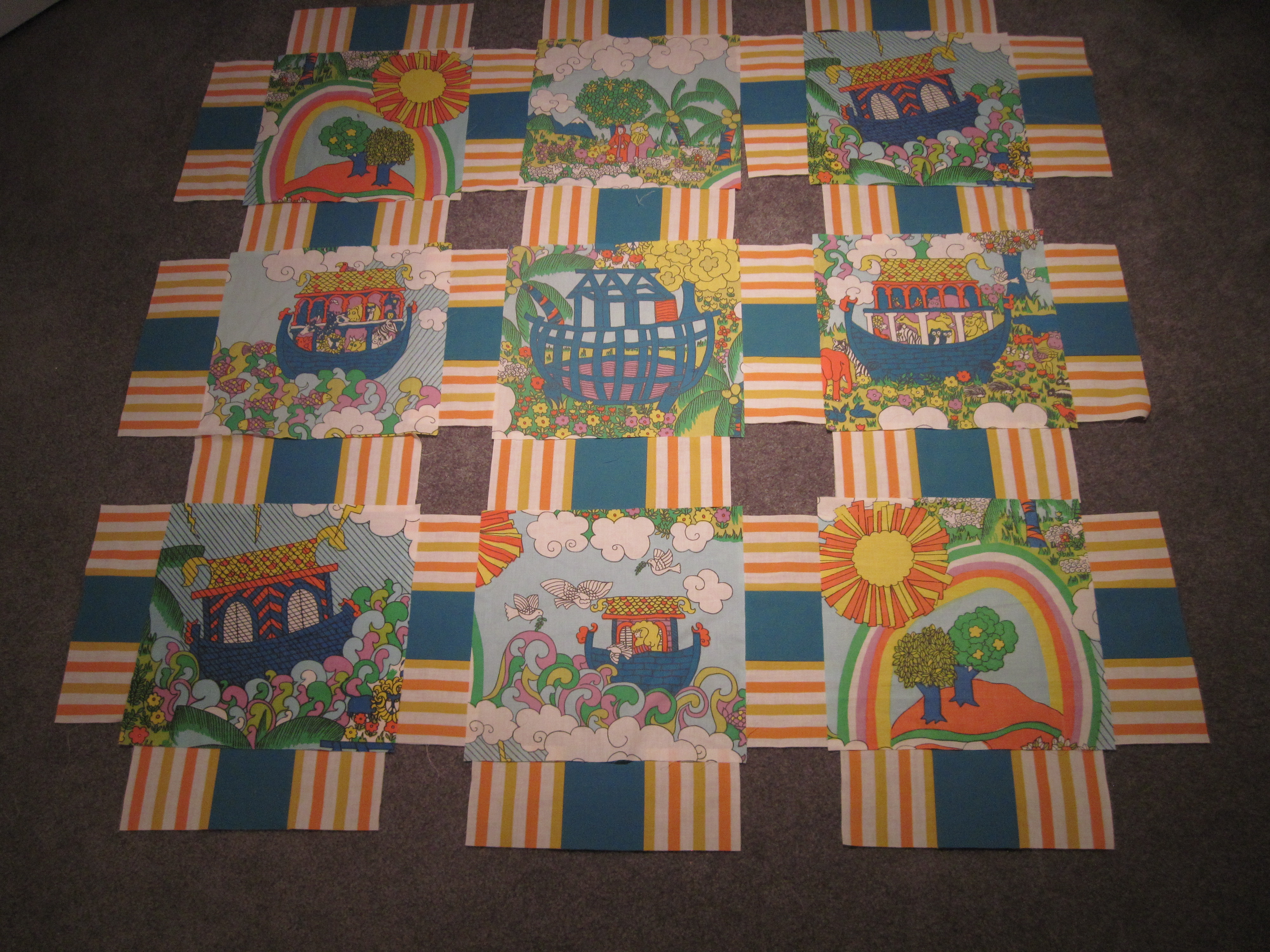I sourced the sheets from eBay and thrift stores. I started with some choosy cutting of the Noah's ark pattern: