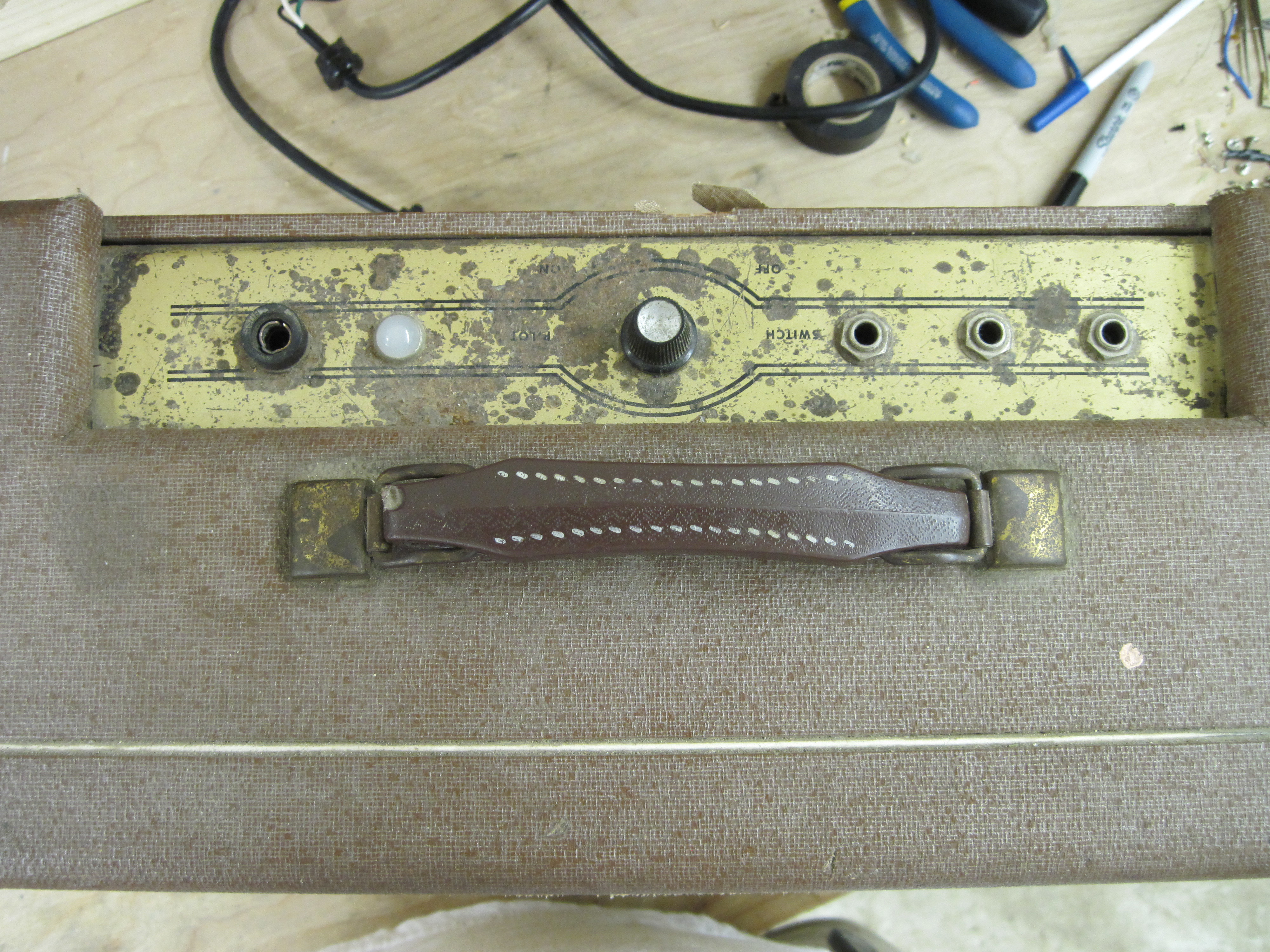 A little sleuthing revealed that it was manufactured by Valco, probably in late 1963 or early 1964.Online sources date the serial numbers G100–G5000 to 1962, but this amp seems to have been built later than that.